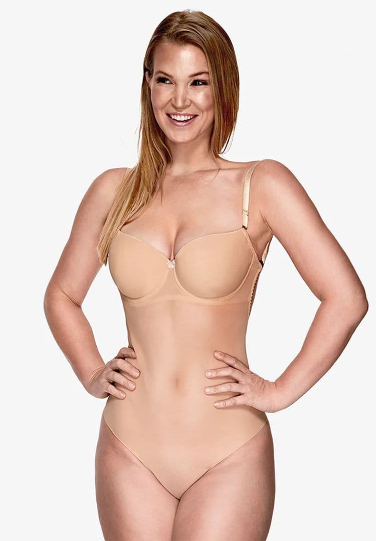 Backless Bridal Home / Bridal / Backless Bridal / Big Cup backless body (thong style) Big Cup backless body (thong style) Big Cup backless body (thong style) £199.99 RRP: £229.99 Stock Status: In Stock Seamless backless body with a thong style brief, ideal for larger cup sizes.. Available in Nude in 32 DD-FF, 34 DD-FF, 36 DD-F and 38DD-E. Size: 32DD 32E 32F 32FF 34DD 34E 36DD 36E 38DD Add to your Wish List Information Specifications Reviews Seamless backless body with a thong style brief bottom, which comes in larger cup sizes. The perfect match for backless wedding dresses which are fitted over the hips and bottom. This is pretty much the only backless option I have found if you are larger than a D cup. It is hand made in the UK. Low back dips well below waist height Underwired non-padded balconette style cups Breathable powernet body for contour smoothing Thong style brief for no visible panty line Toilet friendly hook and eye closure in the gusset Detachable multi-way nude coloured straps (other straps are available) Note: this item has to be worn WITH straps 100% hand made in the UK Size Guide please use the size guide lines below. If in doubt just drop me an email.... Size Generic UK Dress Waist Full Hip 32 S 8 - 10 24" - 28" 35" - 38" 34 M 12 - 14 28" - 32" 38" - 42" 36 L 16 - 18 32" - 36" 42" - 46" Please note; Waist is measured around your belly button, Full Hip is the largest measurement around your bum. Style: Body Suit Type: Bridal Product Code: EL-FRNK Weight: 0.5kg Customer reviews No reviews left yet Write A Review Sort byMost RecentTop Rated No reviews have been left for this product, be the first to leave a review Related Products Clear Straps £15.00